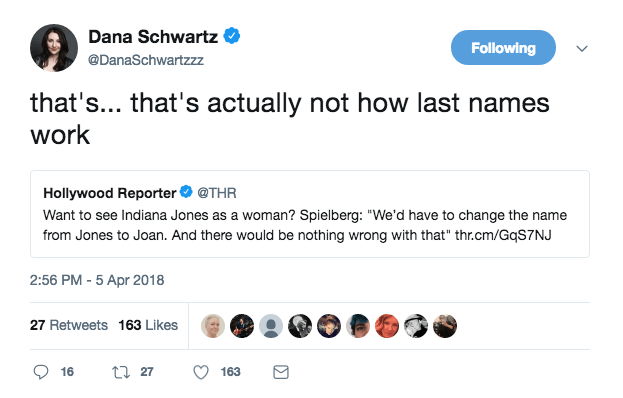 ltriton Uncategorized November 9, 2018December 5, 2018 1 Minute banahbanah: desidesidesi: logicalparafox: minimalistgrufti: great-tweets: literally what the fuck Plus his name was Henry and he called himself Indiana after their dog that he loved, so could even be Henrietta Jones and still call herself Indiana and NOTHING NEED CHANGE AT ALL. I’m a woman and my last name is Jones?? What the literal fuck Your name is Jonesette now I’m sorry. Share this: Click to share on X (Opens in new window) X Click to share on Facebook (Opens in new window) Facebook Like Loading... Related Published by ltriton View all posts by ltriton Published November 9, 2018December 5, 2018