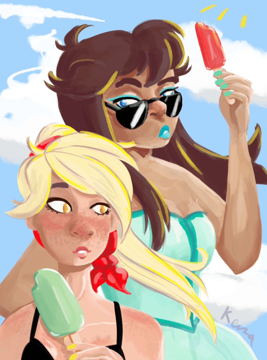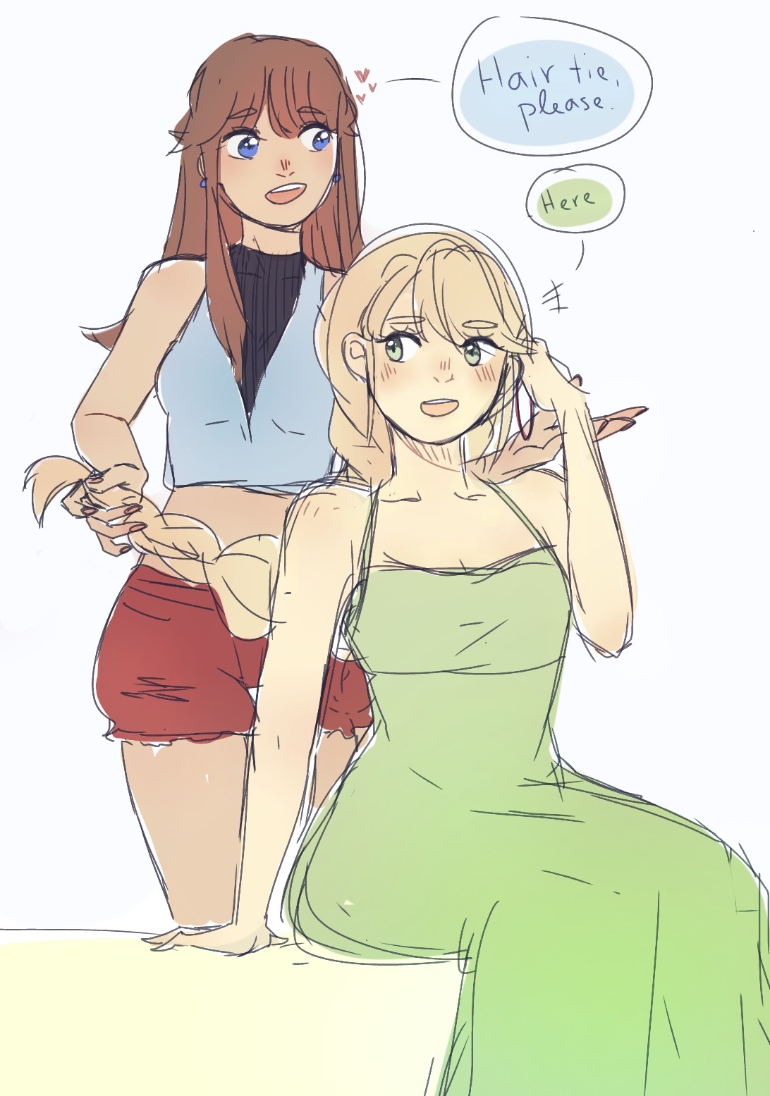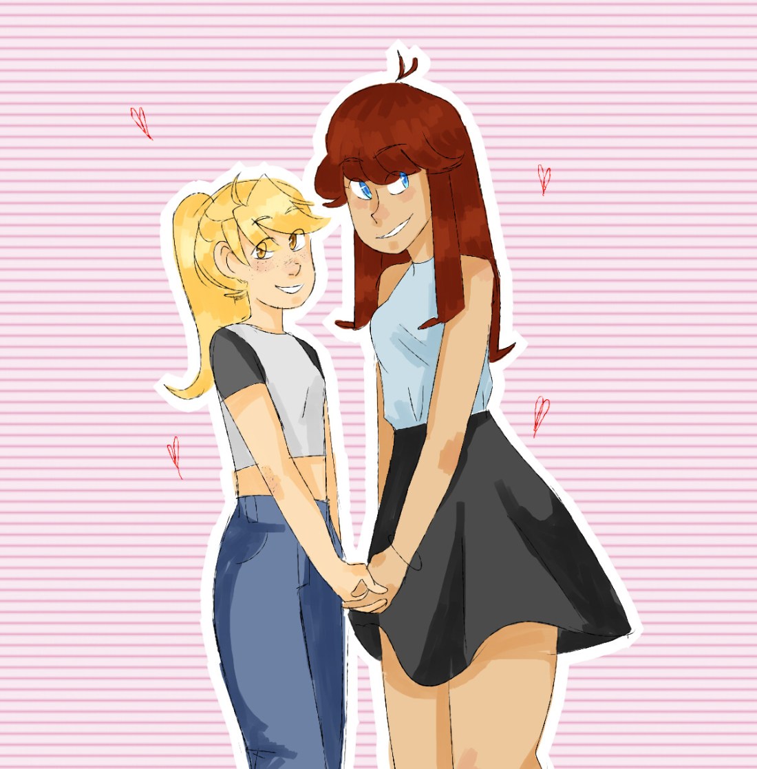 Hi Scout! If you have time to take requests right now, could you maybe draw girlfriends Blue (lesbian) and Yellow (pansexual) in pride stuff? I kind of would love to set it as my background for gay month AKA pride month 💕 ~ Azu